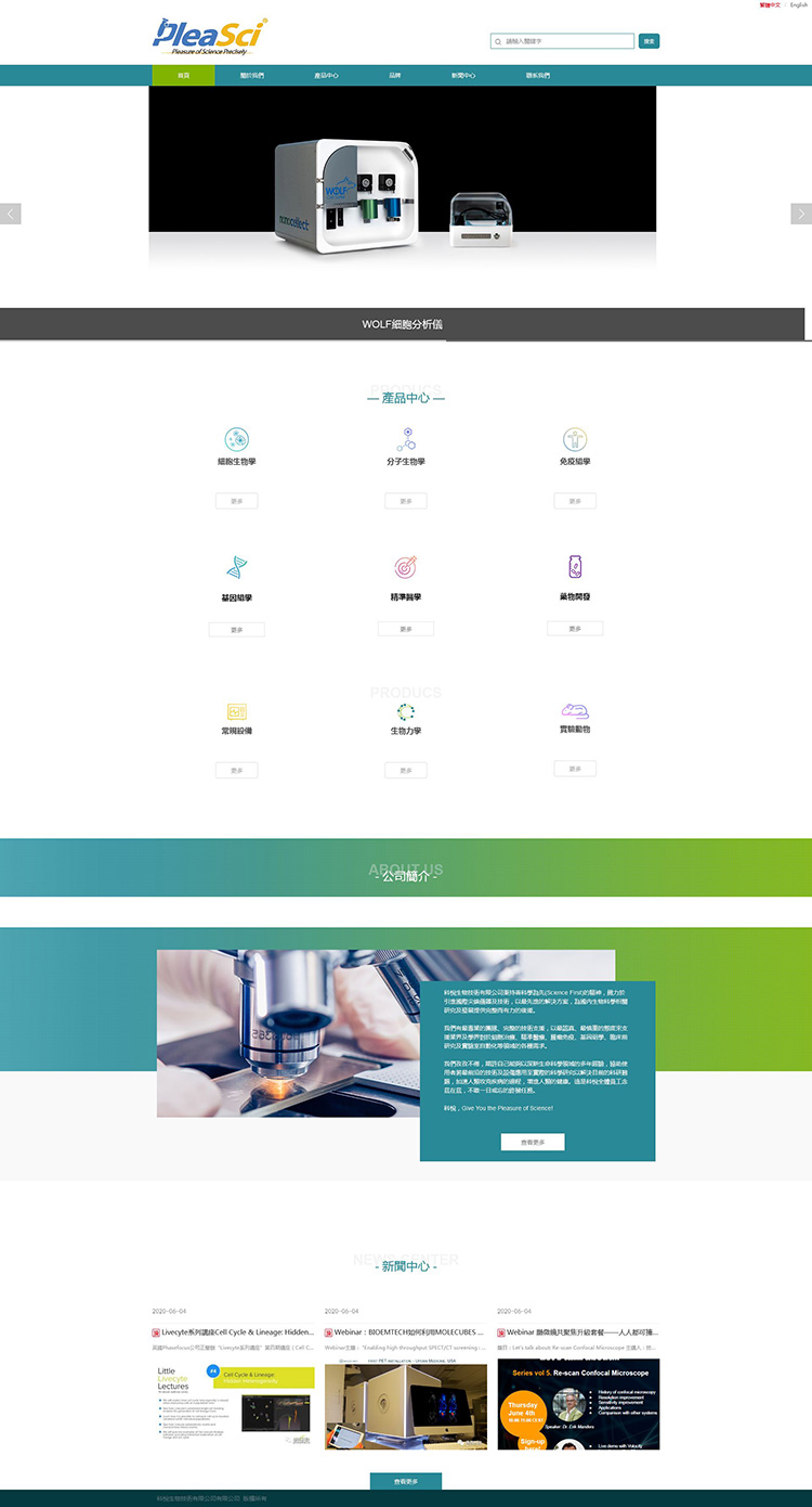 H5响应式企业网站建设,自适应电脑、平板、手机、微信,整个网站规划了首页、关于我们、产品中心、品牌、新闻中心、联系我们等栏目页面,后期也可以通过后台进行编辑修改、新增页面,涵盖企业官网建设标准功能服务,适合于生物科技、仪器设备等行业网站建设。