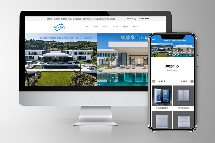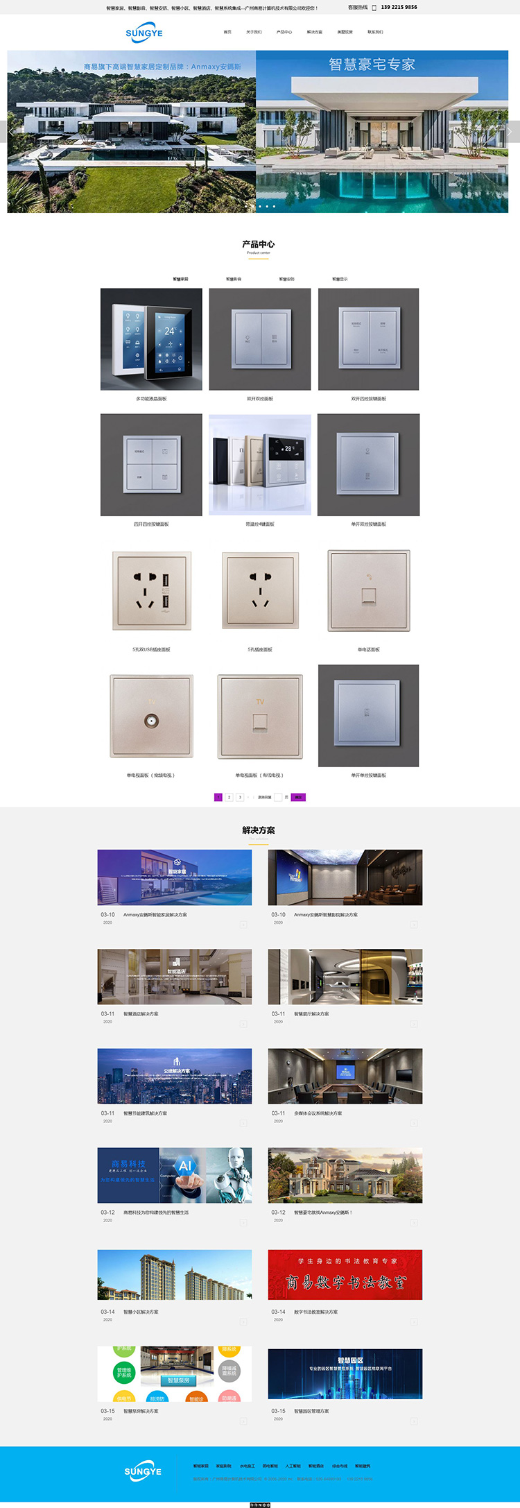 H5响应式企业网站建设,自适应电脑、平板、手机、微信,整个网站规划了首页、关于我们、产品中心、解决方案、美墅欣赏、联系我们等栏目页面,后期也可以通过后台进行编辑修改、新增页面,涵盖企业官网建设标准功能服务,适合于物联网、人工智能等行业网站建设