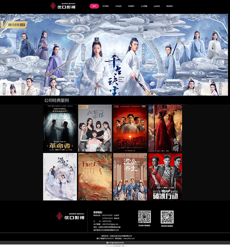 H5响应式企业网站建设,自适应电脑、平板、手机、微信,整个网站规划了首页、关于我们、公司业务、作品展示、人才招聘、企业动态、联系我们等栏目页面,后期也可以通过后台进行编辑修改、新增页面,涵盖企业官网建设标准功能服务,适合于影视文化、特效剪辑后期等行业网站建设