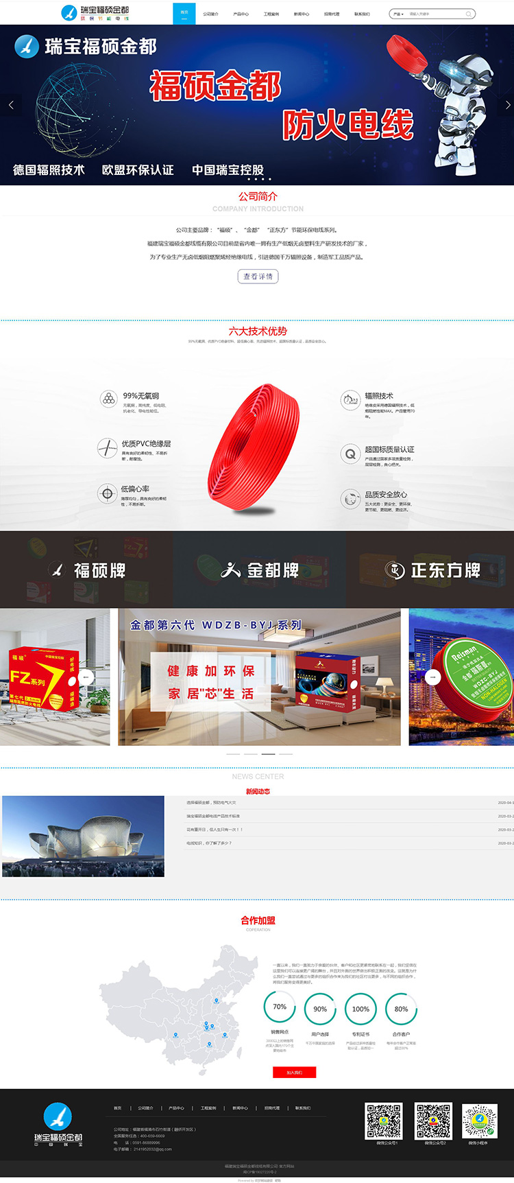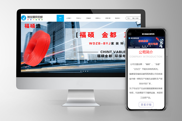H5响应式企业网站建设,自适应电脑、平板、手机、微信,整个网站规划了首页、公司简介、产品中心、工程案例、新闻中心、招商代理、联系我们等栏目页面,后期也可以通过后台进行编辑修改、新增页面,涵盖企业官网建设标准功能服务,适合于工业制品、电线电缆等行业网站建设