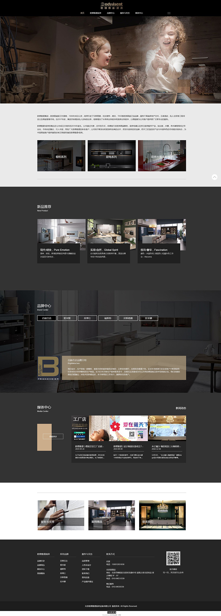H5响应式企业网站建设,自适应电脑、平板、手机、微信,整个网站规划了首页、品牌历史、品牌中心、服务与支持、媒体中心等栏目页面,后期也可以通过后台进行编辑修改、新增页面,涵盖企业官网建设标准功能服务,适合于高端厨卫品牌等行业网站建设。
