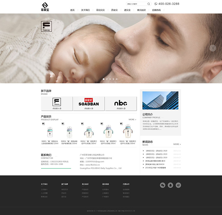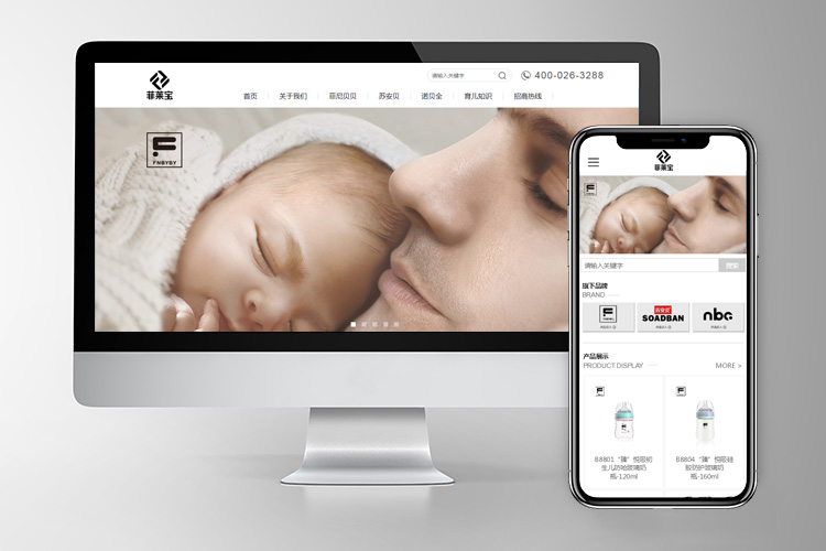 H5响应式企业网站建设,自适应电脑、平板、手机、微信,整个网站规划了首页、关于我们、婴幼儿品牌、育儿知识、招商热线、联系我们等栏目页面,后期也可以通过后台进行编辑修改、新增页面,涵盖企业官网建设标准功能服务,适合于婴儿用品等行业网站建设