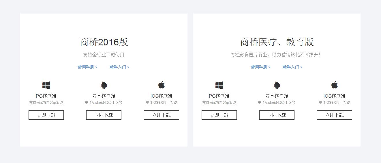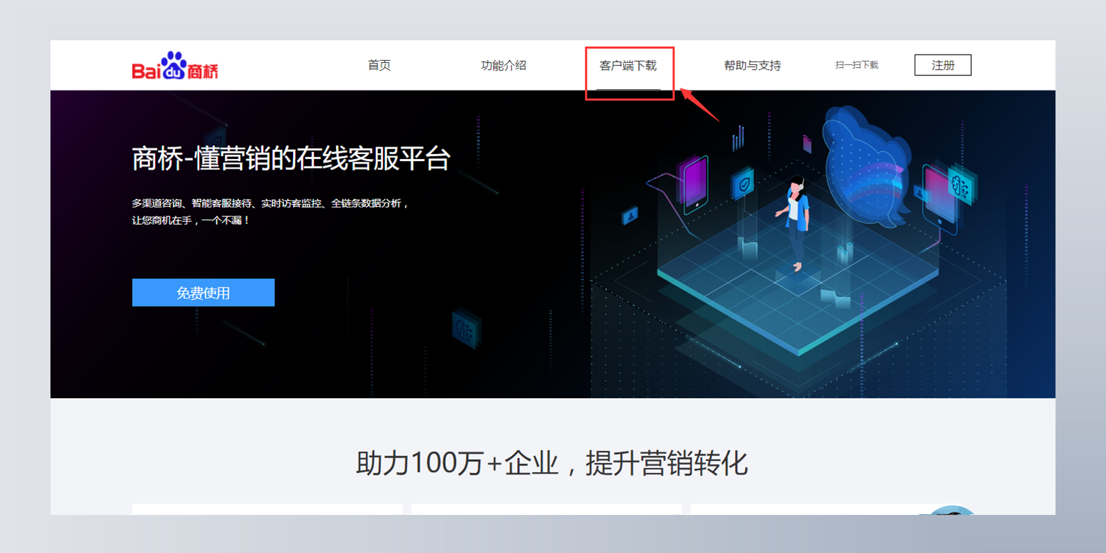 1.2 进入百度商桥首页,下载百度商桥客户端,按照对应版本下载(常用商桥2016 PC客户端)