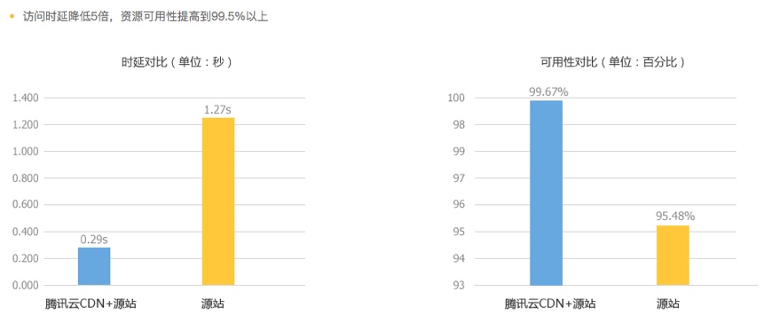 上图数据来源于腾讯云CDN,对比用户的网站使用了CDN和没有使用CDN的效果,帮助大家更形象的理解CDN解决什么问题。