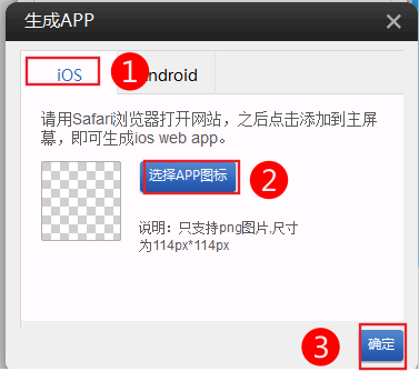 注意:app图标仅支持png图片,尺寸为114px*114px