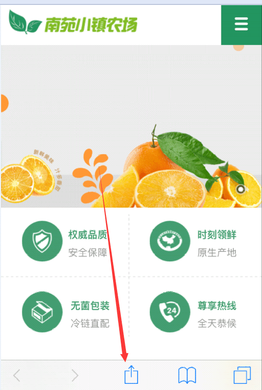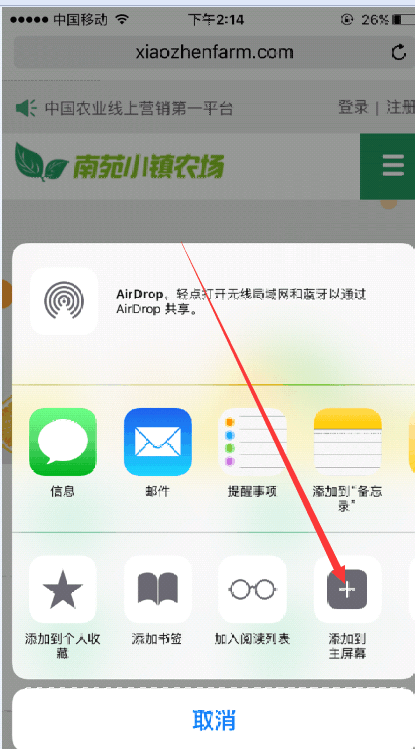 设置好后让用户Safari浏览器打开网站,之后点击添加到主屏幕,即可生成ios web app