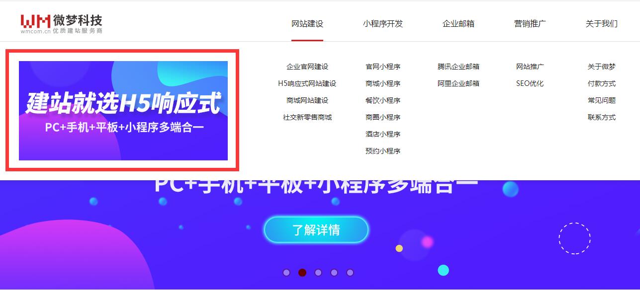 微梦科技是广州网站建设公司,主要业务为企业网站建设、公司官网定制,小程序定制开发、企业邮箱、seo优化推广等服务。六年来专业的建站经验,为上千家知名品牌和优质中小企业解决互联网难题,创造简单高效有价值的网站,咨询热线:020-29066483 !https://www.wmcom.cn/